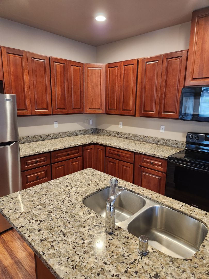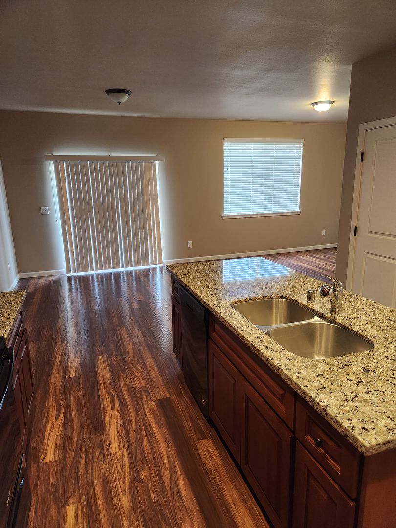 3 Bedroom 2.5 bath with solid granite kitchen counter tops, hardwood style floors, 2-panel craftsman style doors and painted white trim work.